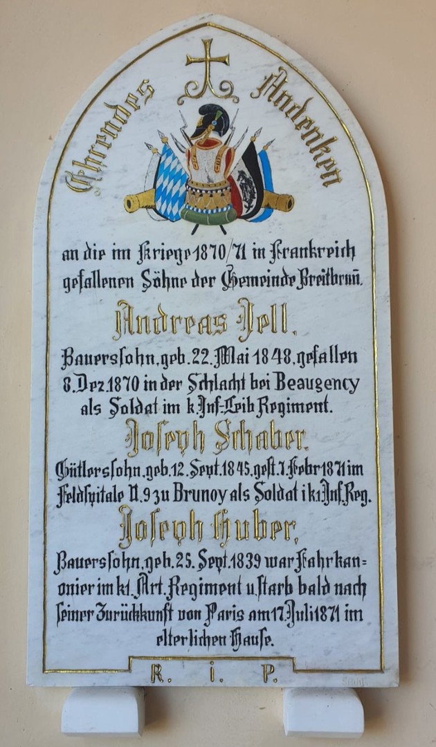 Die Gedenktafel für unsere Soldaten des Krieges 1870/71 in Frankreich im Nordportal der Pfarrkirche St. Johannes erstrahlt wieder im alten Glanz.