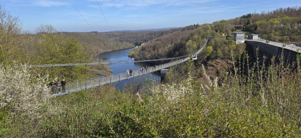 Auf der Rückfahrt machten wir noch bei der Rappbodetalsperre halt und wir hatten die Möglichkeit die dortige Seilhängebrücke, mit 483 m eine der längsten der Welt, zu überqueren. Eine durchaus beeindruckendes Erlebnis, da die Schaukelbewegungen der Brücke deutlich wahrzunehmen waren.